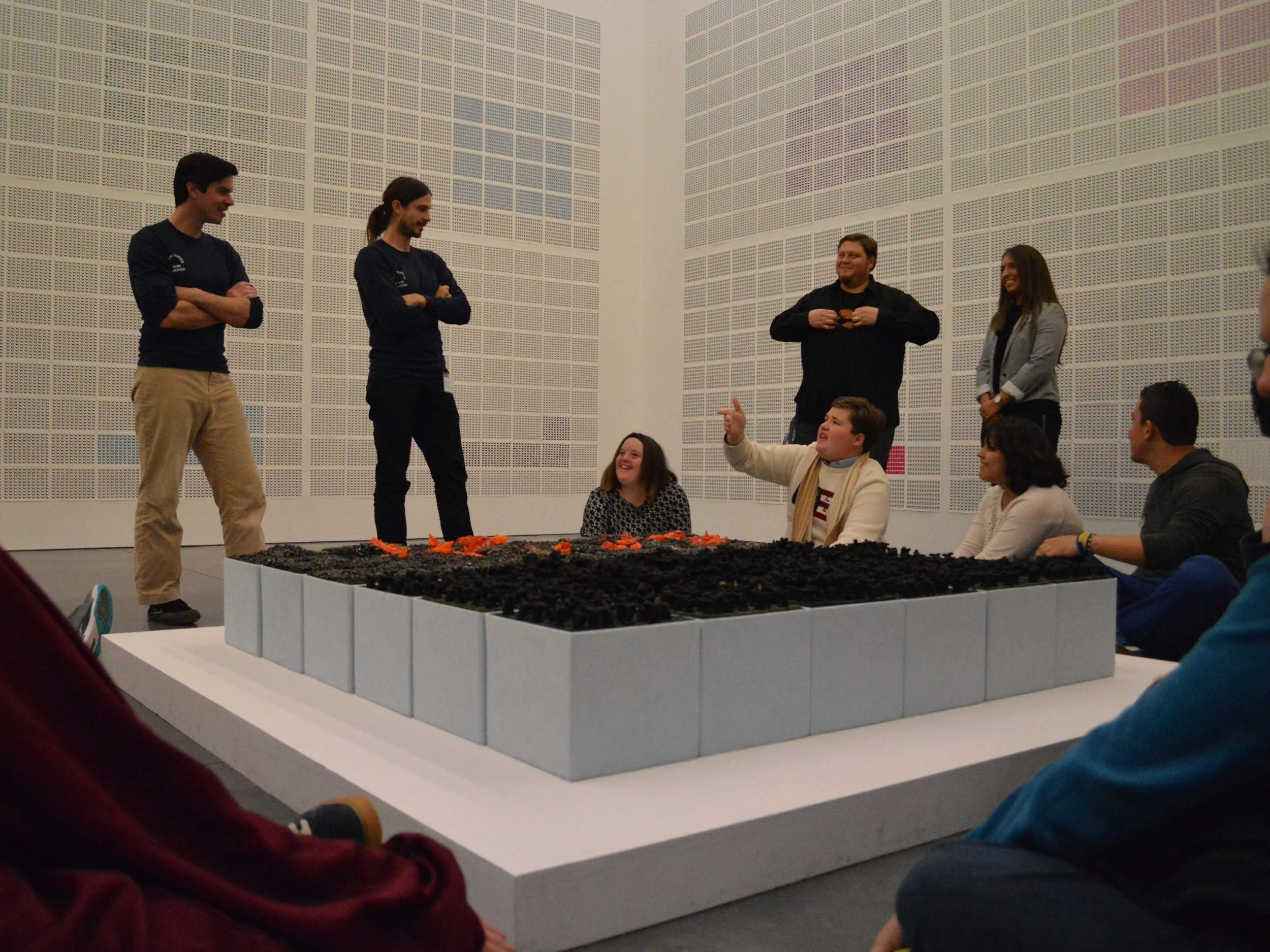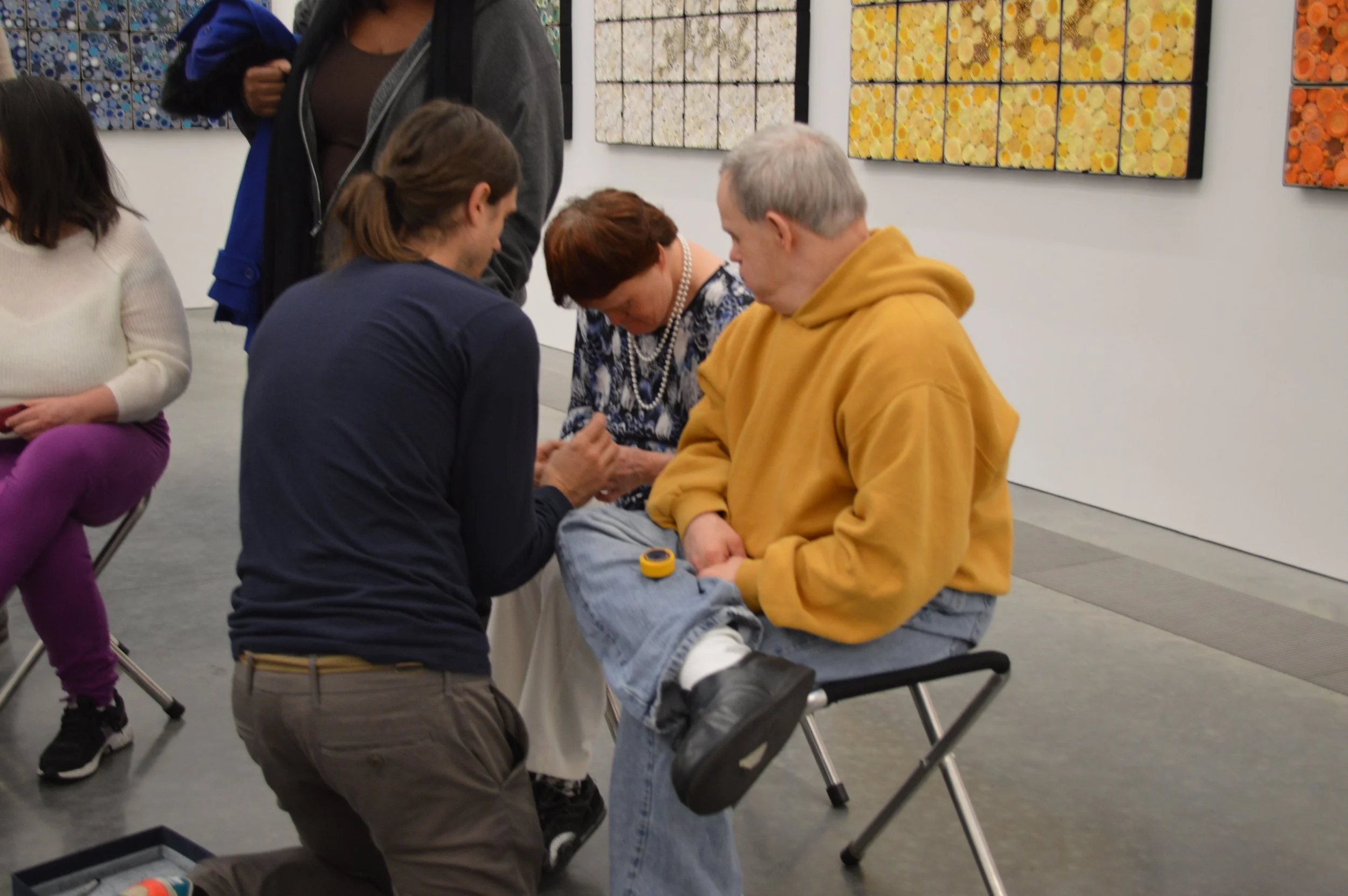 Next came scroll-making as a group activity where each community artist’s work became part of the Collaborative Masterwork, 1960’s TV Dinner, now in the permanent collection of the Parrish Art Museum. And, for the first time, each artist’s individual portrait was taken for the group Portrait Mural.