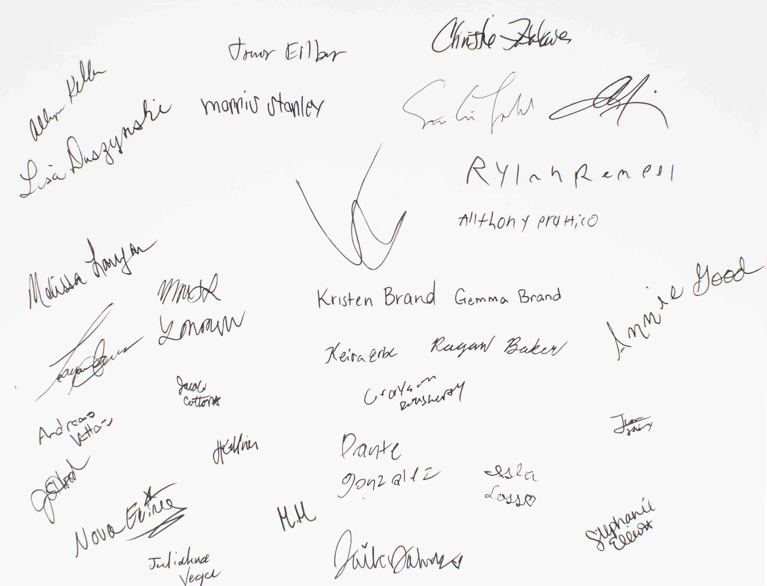 Signature Plate bearing the names of 31 participants of the National Scrollathon in Maryland, 2026. Archival paper, ink, 8 1/2 x 11 in.